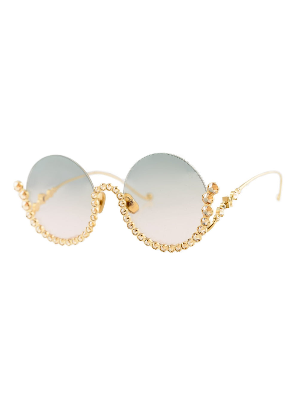 Japanese Titanium, Swarovski Crystals, ZEISS Lenses with azure back coating, plated by hand in real 24K Gold. Model is wearing Full Moon in White Gold.