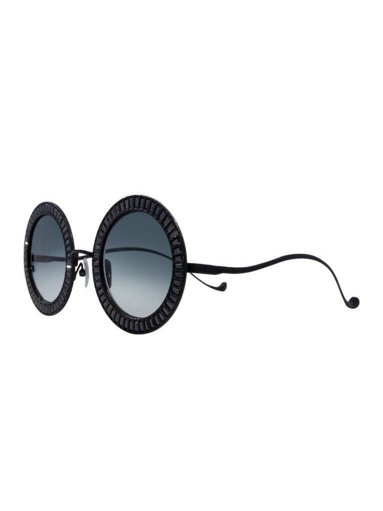 Stainless steel, Plated by hand. Tapered baguette cubic zirconia stones, Sun lenses by ZEISS, with azure anti reflection back coating and the AKK logo engraved on the left lens.