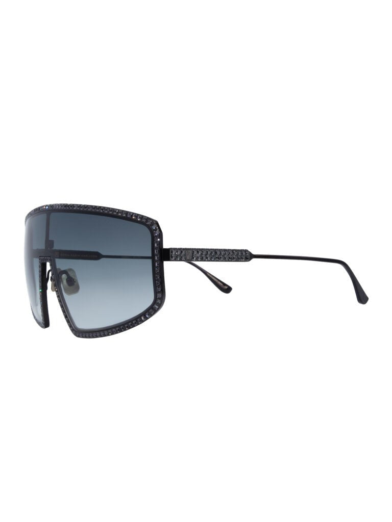 Pure titanium framework, Swarovski crystals set by hand, Curved shield lens by ZEISS, with azure anti reflection back coating and the AKK logo name engraved on the lens. Plated by hand in real 24K gold