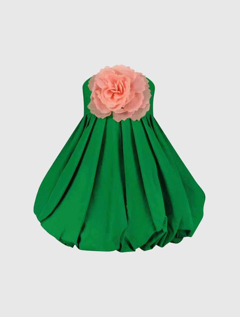 Green Strapless Faille Mini Dress With 3D Flower