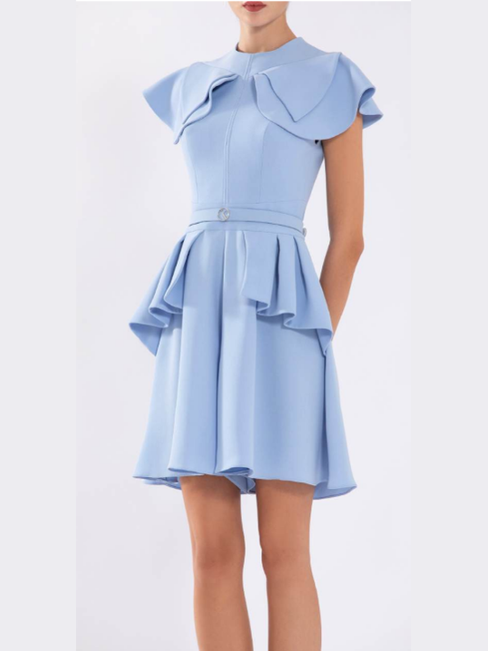 and a flared, pleated shorts;