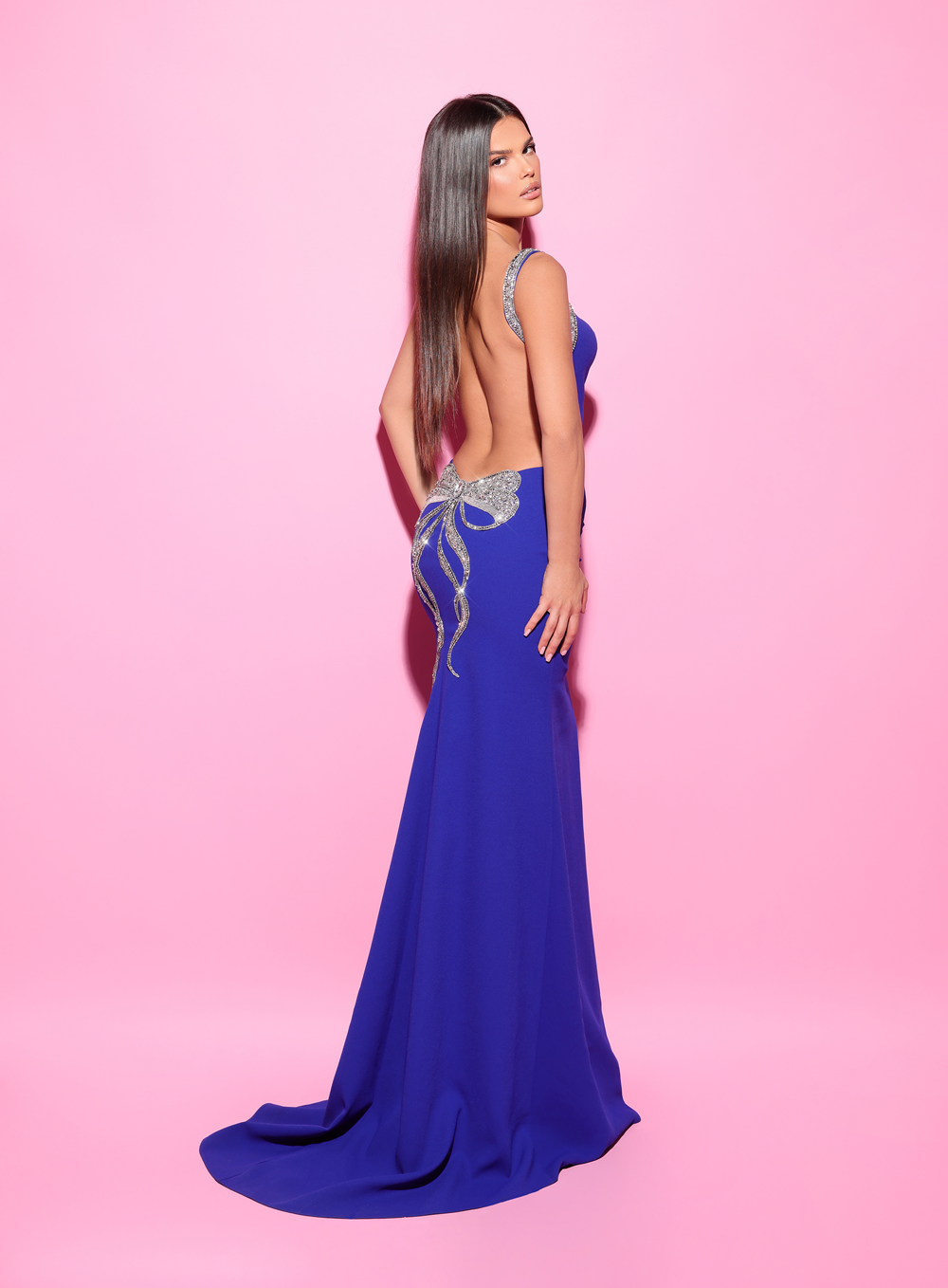 This elegant gown highlights a timeless silhouette with embellished straps, offering a refined and sophisticated look. Perfect for formal occasions.